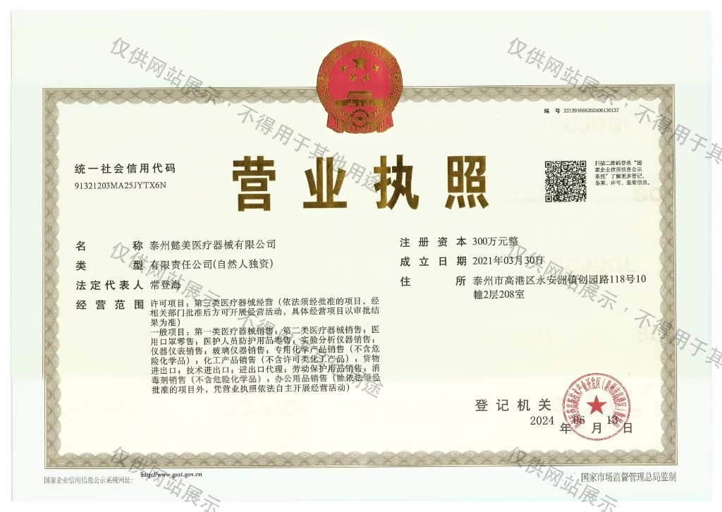 公司依法持有营业执照,并具备医疗器械经营许可/备案等资质; 业务开展严格在登记的经营范围及许可范围内进行。 涉及的具体经营项目与品类,以现行证照所载为准。