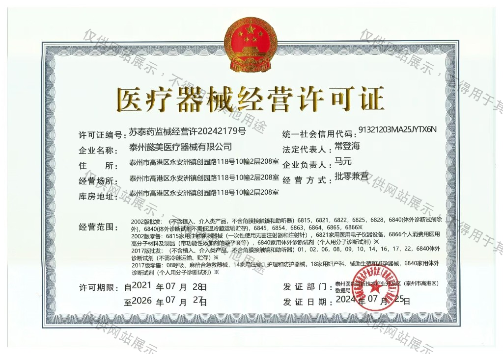 泰州懿美医疗器械有限公司(「懿模」等品牌相关产品信息见本站)面向医疗机构、院校及政企客户, 提供医疗相关物资与设备的供应与配套服务,坚持依法合规经营。
