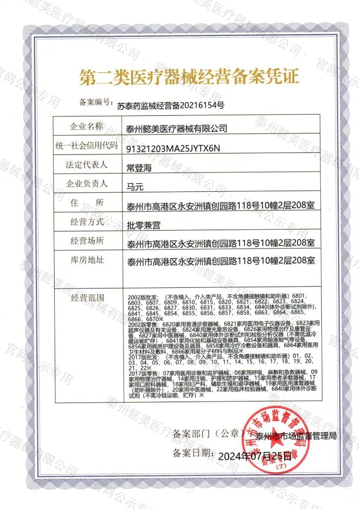 泰州懿美医疗器械有限公司(「懿模」等品牌相关产品信息见本站)面向医疗机构、院校及政企客户, 提供医疗相关物资与设备的供应与配套服务,坚持依法合规经营。